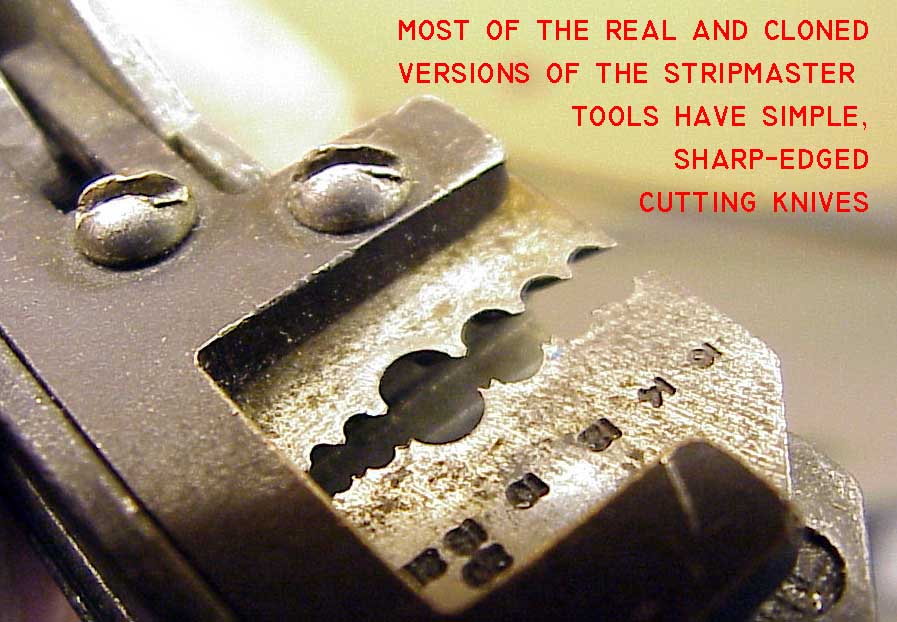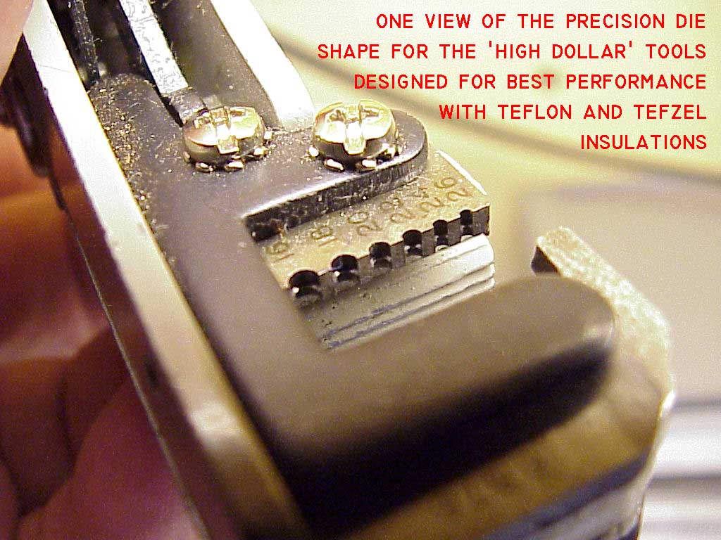 . . but WHAT a difference.Furthermore, the "knives" intended to cut the insulation are not even sharp-edged. One can see that these dies are more difficult to make than the knife-edged dies above . . . but a hundred dollars worth harder? Yep, that's the approximate difference in cost of a stripper with the so-called tefzel or teflon dies and the plain vanilla PVC dies shown above.